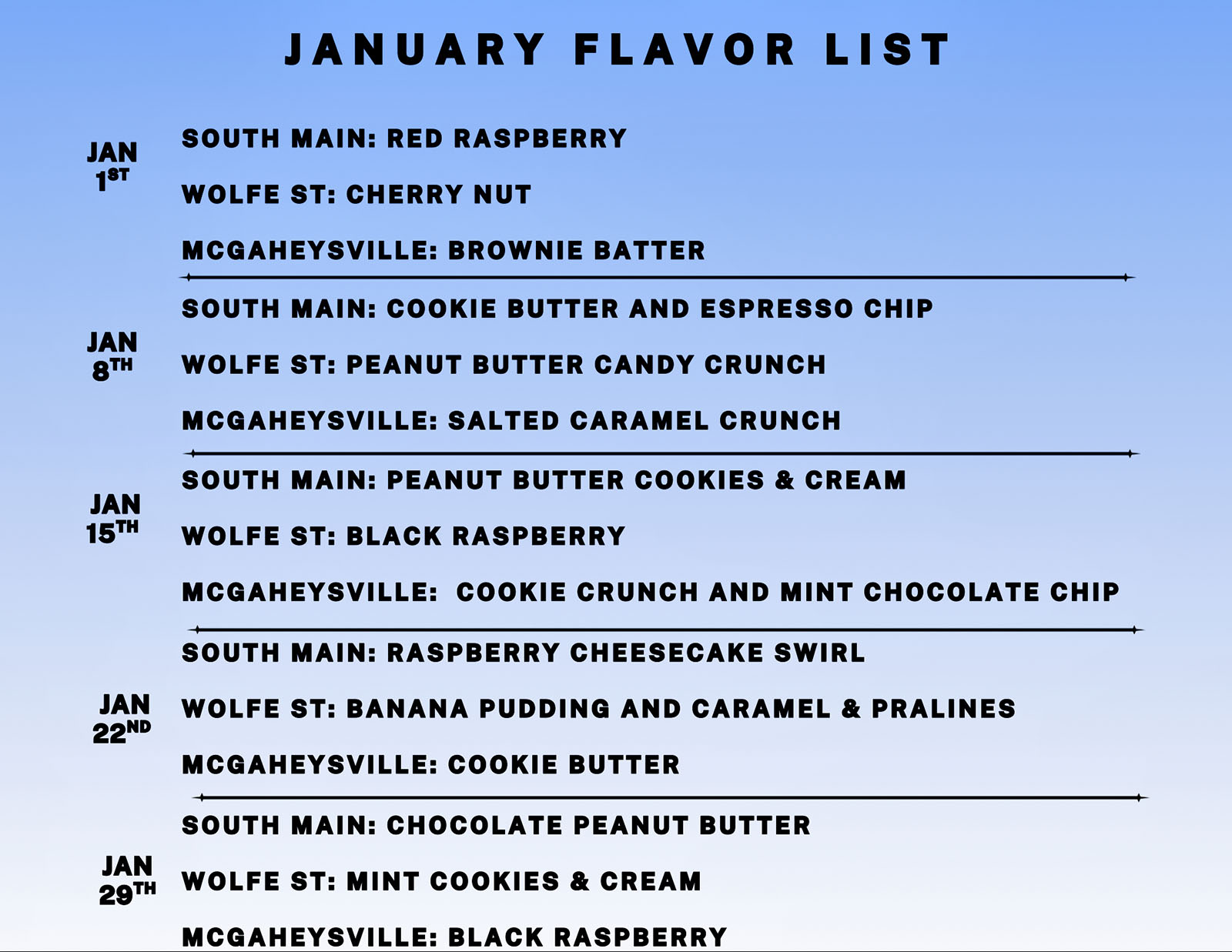 We may close during inclement weather. If so, closing information will be posted on our Facebook and Instagram accounts. Closed Thanksgiving, Christmas, and New Year’s Day.